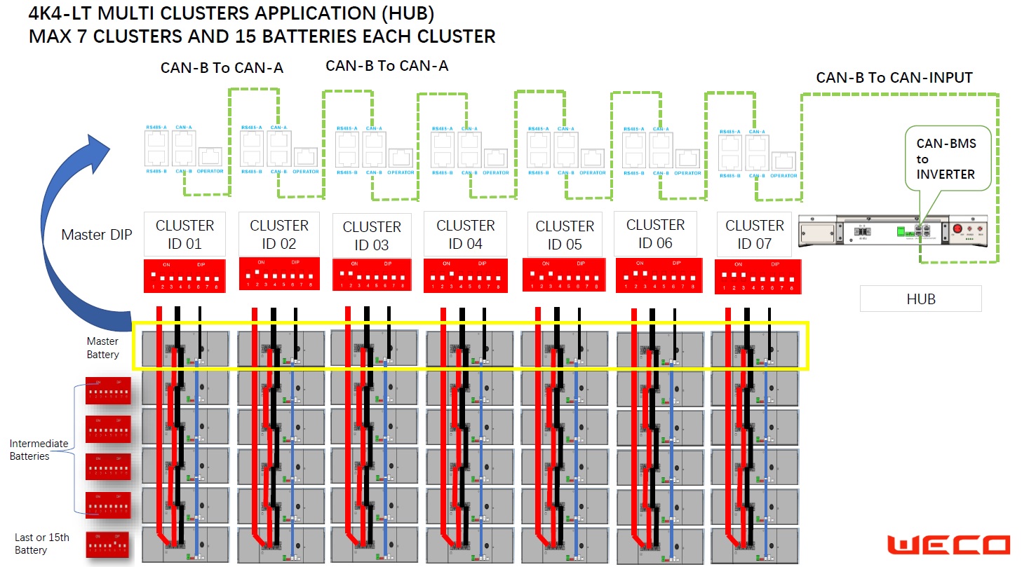 bateria de lítio weco 4k4 LT permite a conexão de até 15 baterias sem