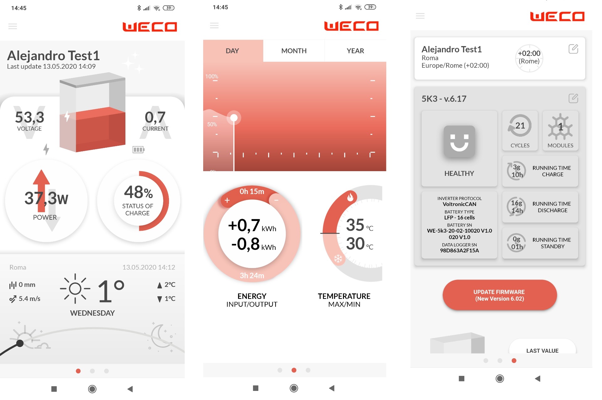 Weco permite carregar e descarregar a 1C, portanto, com uma única bateria de