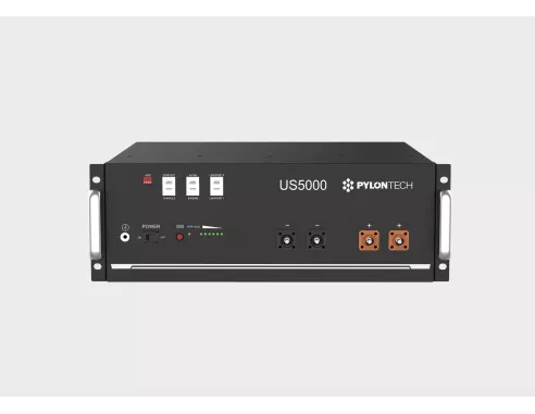 Pylontech 4,8 kWh US5000 48V é leve (apenas 38kg) e permite descargas superiores a 95% e duramais de 6.000 ciclos a