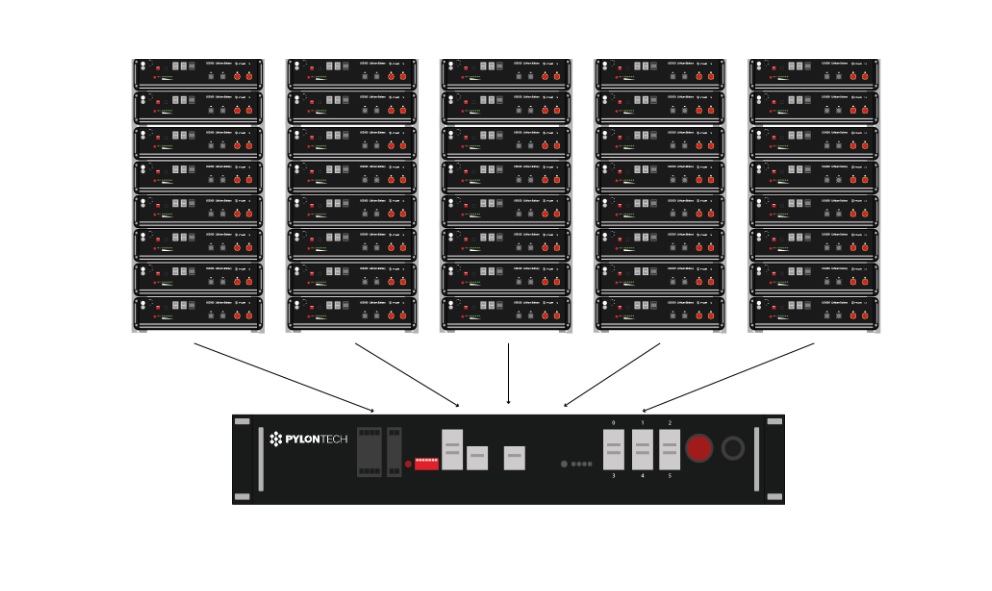 e conexão paralela de várias baterias de lítio Pylontech 4,8 kWh US5000 48V
