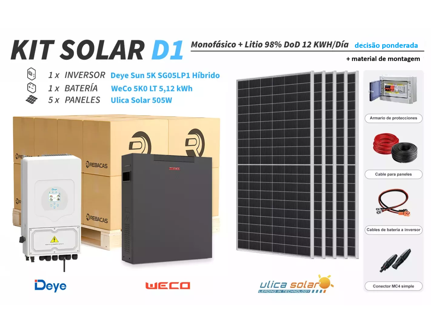 Kit de lítio Deye D1 12 kWh/dia com bateria
