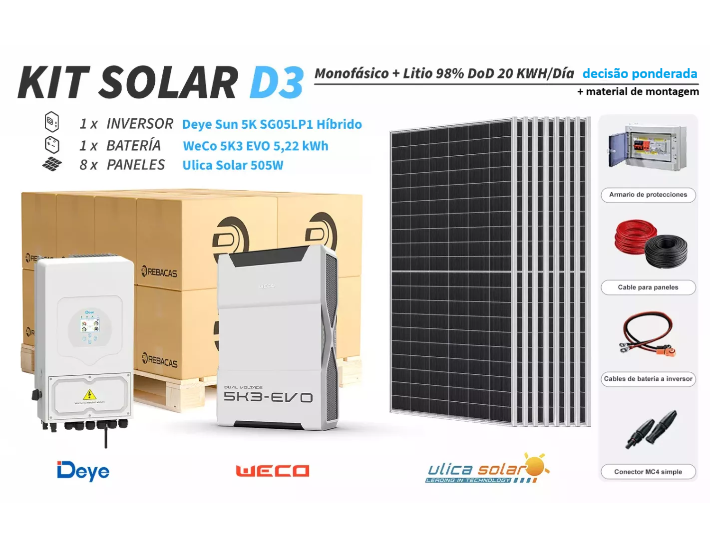 Kit de lítio Deye D3 de 20 kWh/dia com bateria