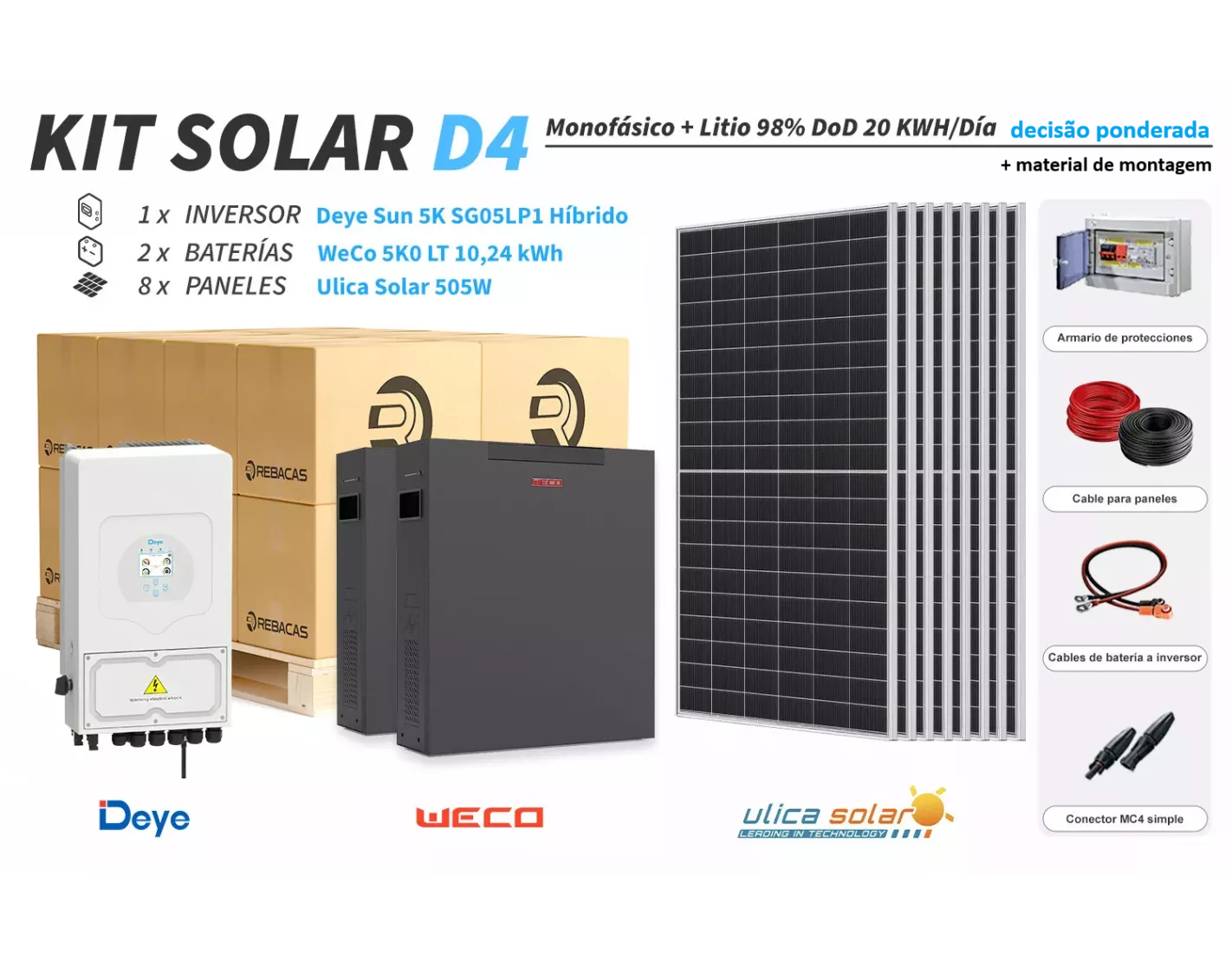 Kit de lítio Deye D4 de 20 kWh/dia com bateria