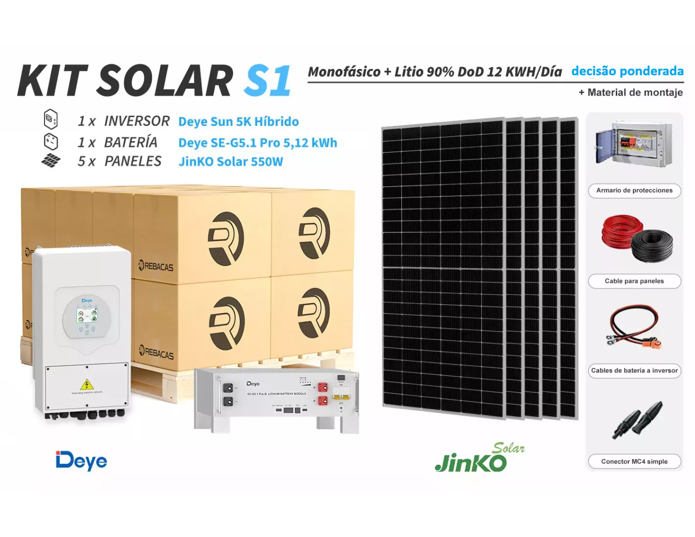 Kit de lítio Deye S1 de 12 kWh/dia com bateria